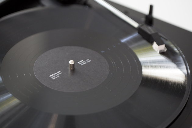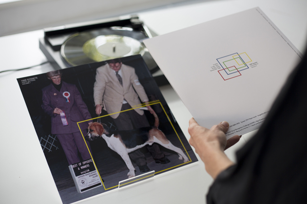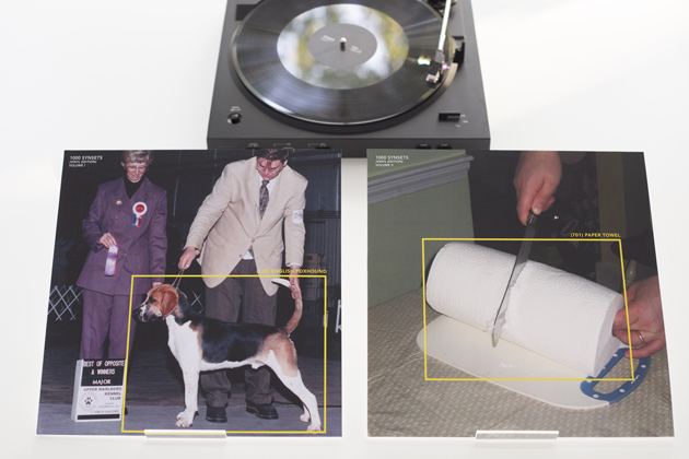 Each copy of the vinyl records displays a different synset and picture used by researchers participating in the ILSVRC Challenge to train their models.